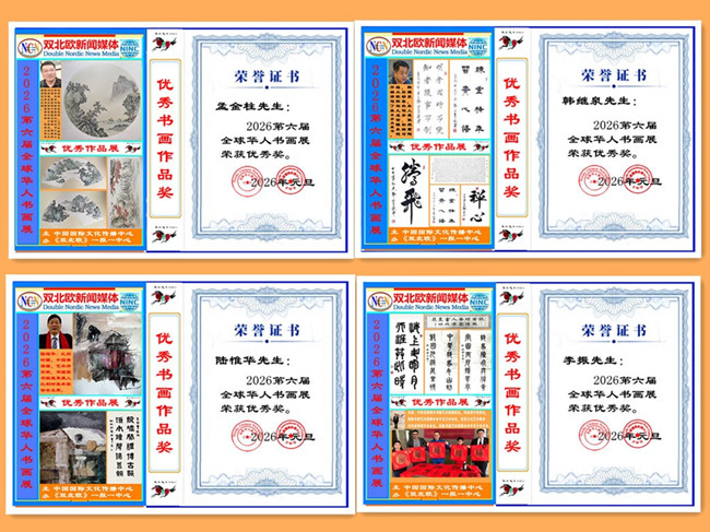 (《北欧华人报》北欧国际新闻中心记者文艺报道)12月31日,将送走2025年倒计时,迎接2026年元旦的到来。期盼已久的2026第六届全球华人书画展开幕了,这是一届高新科技全面展示的书画影视作品。是全球华人书画家和主办方的无私奉献,送给全球华人最珍贵的新年大礼。